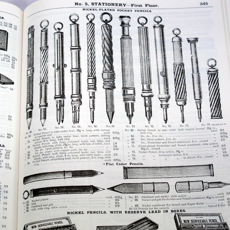 The image above shows a selection of pencil cases and pen holder as appeared in the Army & Navy stores catalogue dated 1907 (Edwardian period), although many of these items would have been produced in the earlier Victorian period.