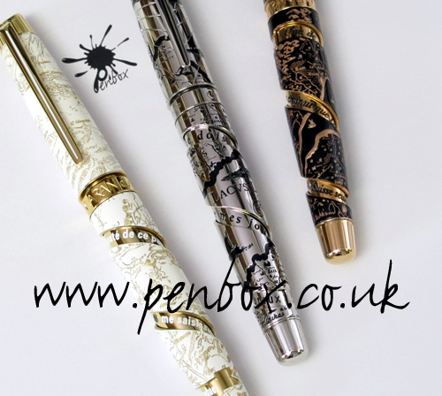 The trilogy of three limited edition Caran d’Ache Secret Journey fountain pens have been assembled above in the pen shop at Penbox. From left to right are the Tolstoy, Voltaire and Chateaubriand. Each edition is limited to 300 fountain pens. Full details of the Secret Journeys from Caran d’Ache can be found on their website. We can supply all limited edition Caran d’Ache pens and welcome all enquiries.