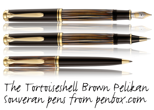 The Special Edition Tortoiseshell Brown Pelikan Souveran fountain pen is now available from our online pen shop or in the pen shop at 14 Fountain Court, Market Place, Epworth, DN9 1EG, telephone 01427 874433, email: tortoiseshellbrown@penbox.co.uk, web: http://www.penbox.co.uk/pelikan.tortoiseshell.brown.htm . Launched in the first quarter of 2013 this tortoiseshell brown finish is available for a limited time only.