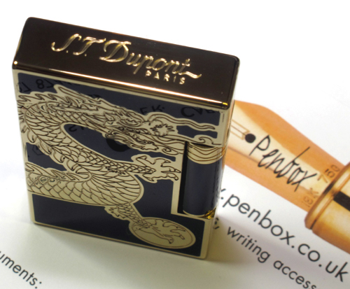 This lighter from S T Dupont is one of 888 pieces in Dupont’s 2012 Premium Collection which also includes a matching gold and chinese lacquer fountain pen. We are more accustomed to supplying S T Dupont pens but on this occasion we were pleased to supply the lighter to a delighted customer. We can of course supply all S T Dupont lighters on request.